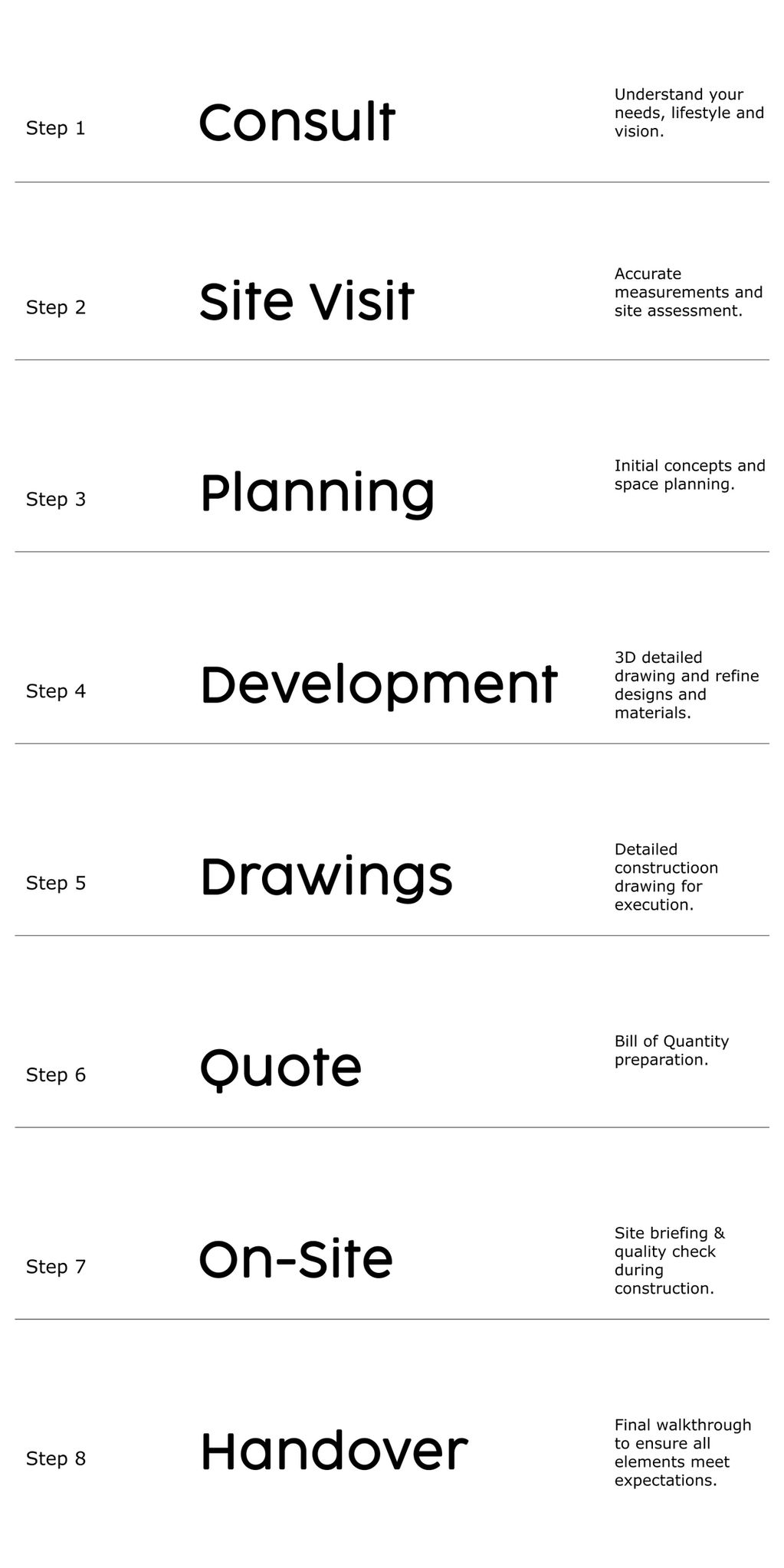 Our design process ensures your vision is translated into a functional and beautiful spaces.
